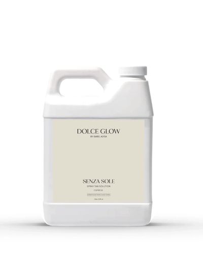 Introducing the exclusive Dolce Glow EXPRESS sunless tanning formula—the revolutionary luxury solution crafted specifically for professional airbrush tanners. This advanced formula delivers superior, natural-looking results with an initial rinse wait time of only 2-3 hours, as opposed to 8 hours with our regular formula.